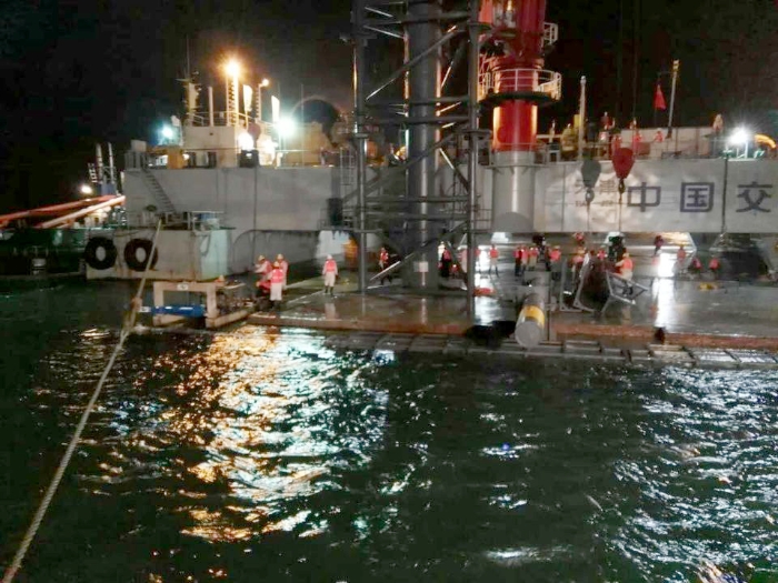 3月7日8:42,港珠澳大桥岛隧最后一节沉管E30管节安装成功,纵坡,轴线,精度均满足设计标准。至此,港珠澳大桥岛隧工程33节沉管全部安装完毕,隧道总长达到5652米,距最终合龙仅剩12米,烟台打捞局港珠澳潜水项目部再次圆满完成了关键沉管的安装!