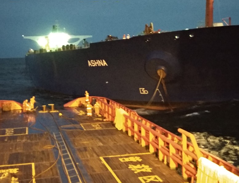 长330米、宽58米的30万吨级外国油轮“ASHNA”轮,在青岛港遭遇锚链和锚严重缠绞,船东组织当地力量几经尝试均未启解成功。应船东请求,“德翔”轮10月14日赴现场海域,确定作业方案并立即进行锚和锚链的切割及打捞工作。经过连续45个小时的不懈努力,成功将缠绞在一起、重达40吨的锚和锚链回收到甲板,并协助“ASHNA”安全离开现场海域,确保了船舶和人员安全,以过硬素质和专业水平得到了外轮船东和船员的高度好评。